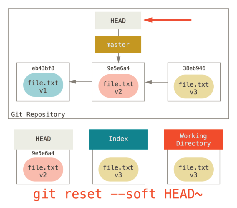 1. HEAD가 가리키는 브랜치를 옮긴다. (--soft 옵션이 붙으면 여기까지)