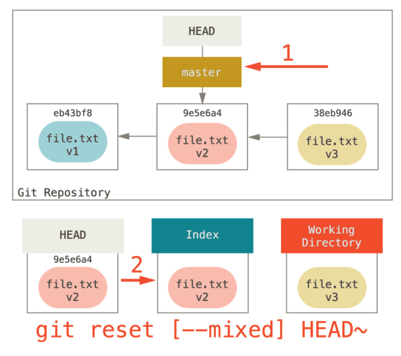 reset 명령을 실행할 떄 아무 옵션도 주지 않으면 기본적으로 --mixed 옵션으로 동작한다.