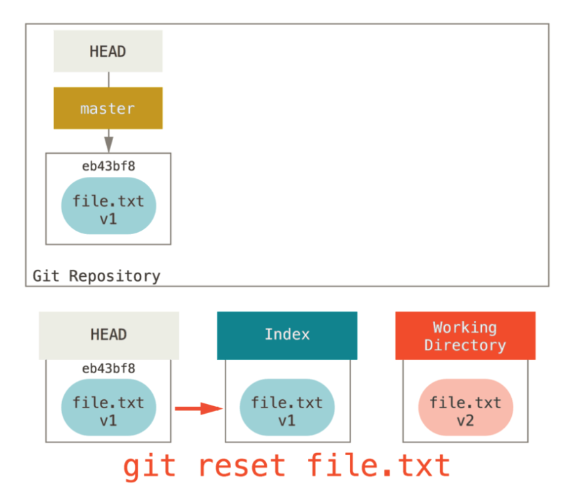 파일을 unstaged 상태로 만든다. 이 명령은 git add와 정확히 반대로 동작한다.
